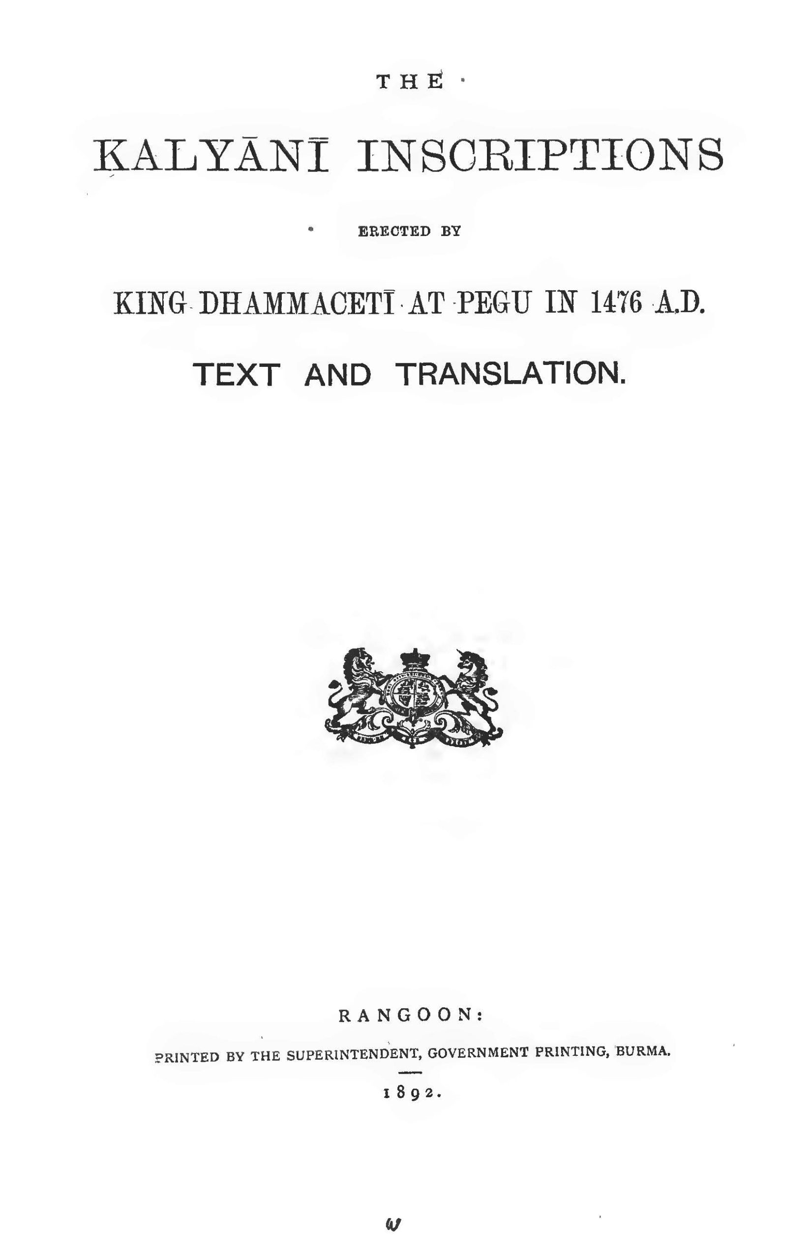 Extract from Kalyāṇī Inscription, translated by Taw Sein Ko, 1892